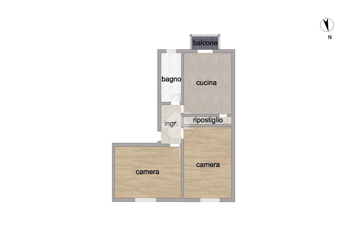 L'immobile ha una superficie di 65 mq ed è composto da un'ampia cucina con balcone, 2 grandi camere matrimoniali, un bagno finestrato con doccia ed un ripostiglio.