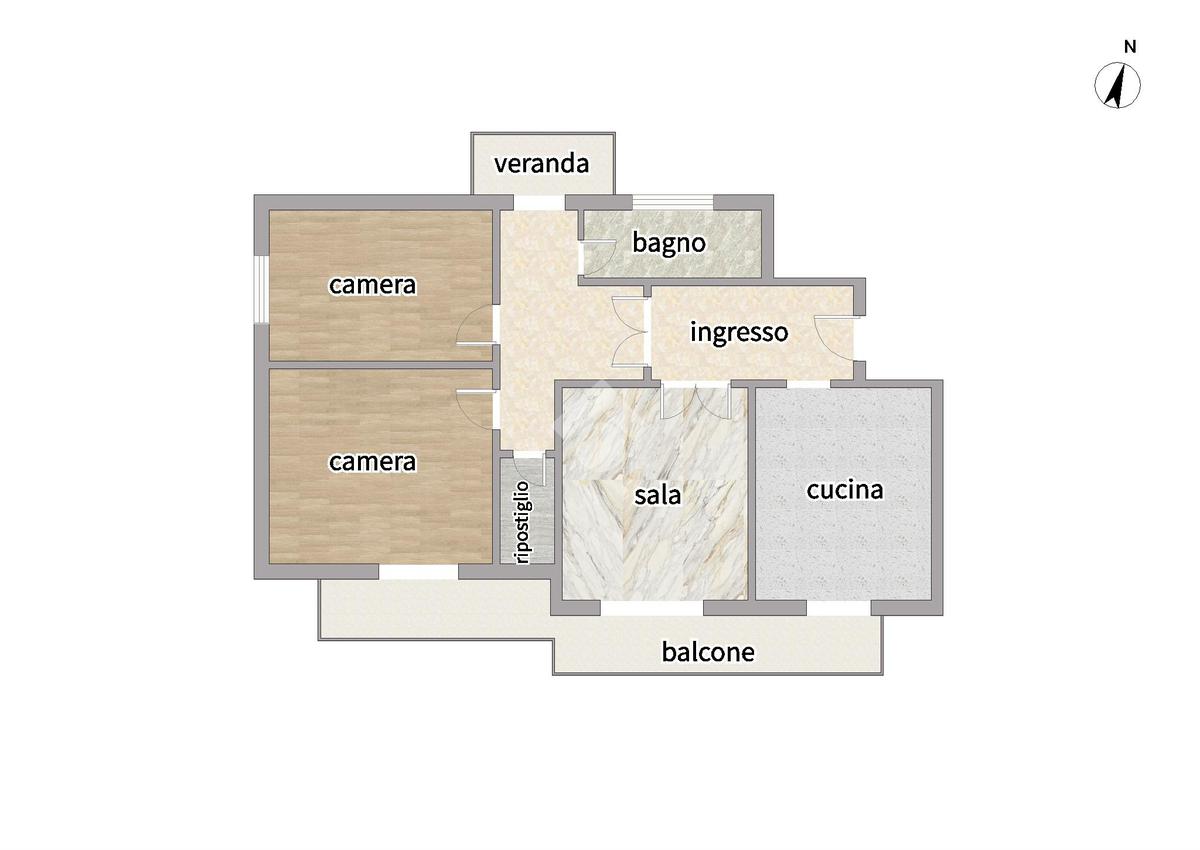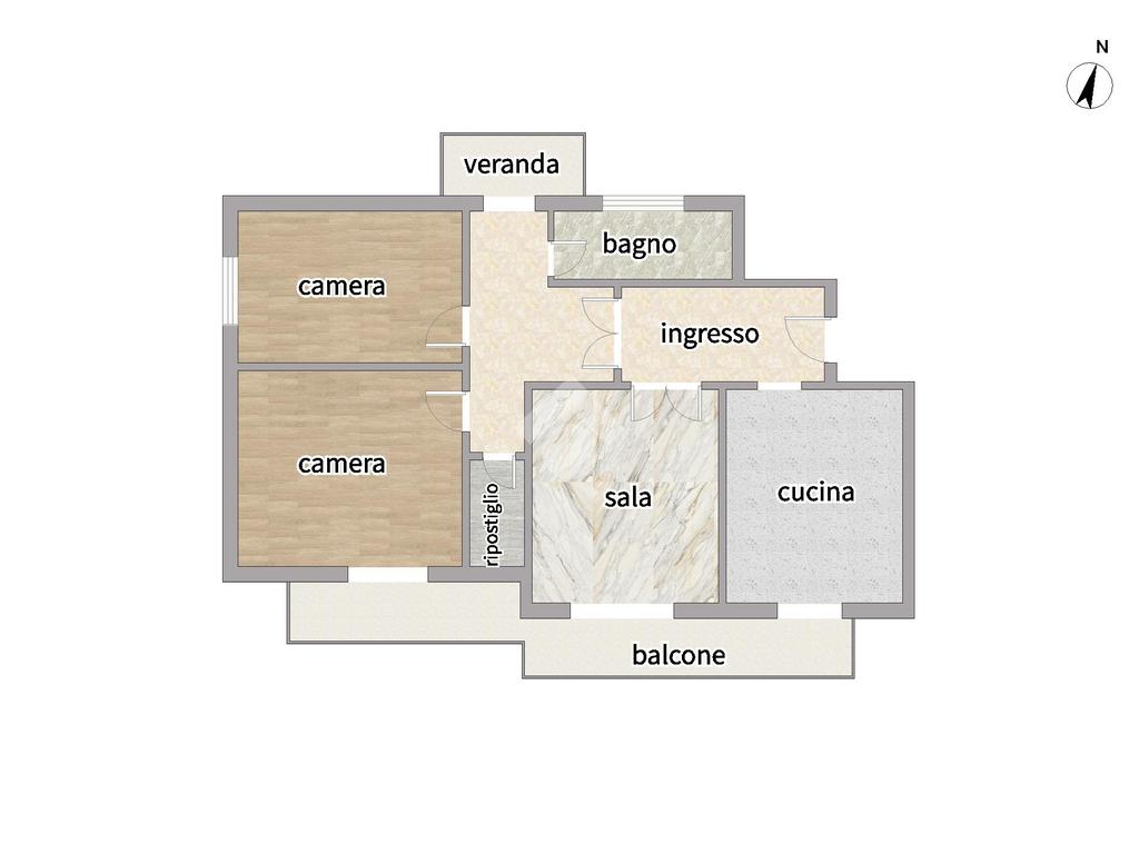 Attraverso una porta che conduce ad un disimpengo, raggiungiamo la zona notte composto da 2 camere matrimoniali, un bagno finestrato con doccia, un ripostiglio e un comodo terrazzino verandato.