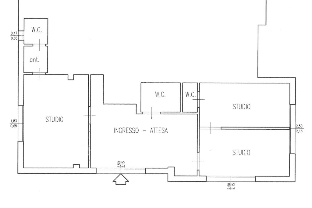 Il fondo è composto da un ampio ingresso adibito a sala d'attesa, tre stanze ad uso ufficio o ambulatorio e tre servizi igienici, di cui uno accessibile a disabili.